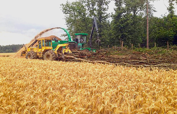 Les produits issus de troncs et de branches sont transformés en plaquettes, puis stockés et traités pendant quelque mois sur plateforme afin qu’ils puissent perdre leurs taux d’humidité pour être livrés en chaufferie. Les produits de souches, branches, troncs, racines souillés de sable et de terre sont criblés en 2 fractions pour être répartis sur des terres agricoles.