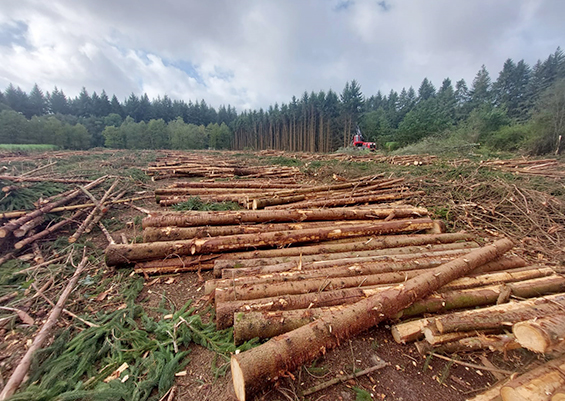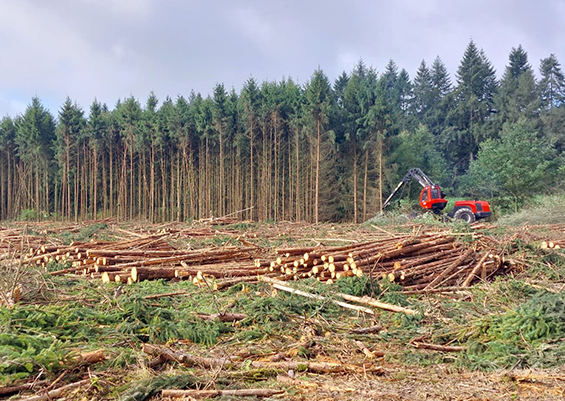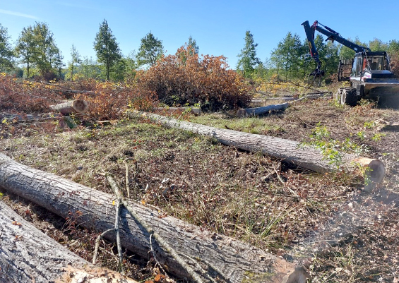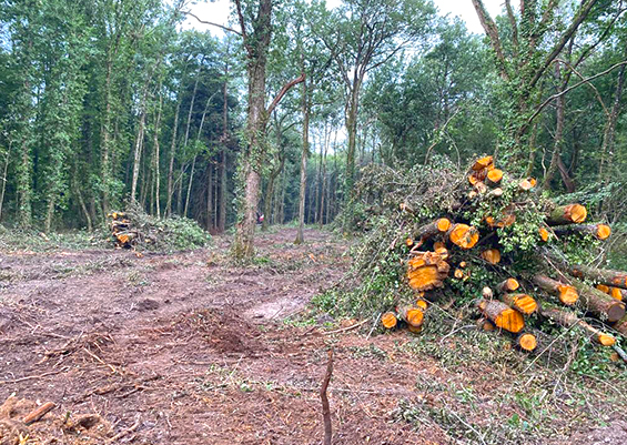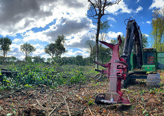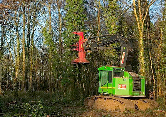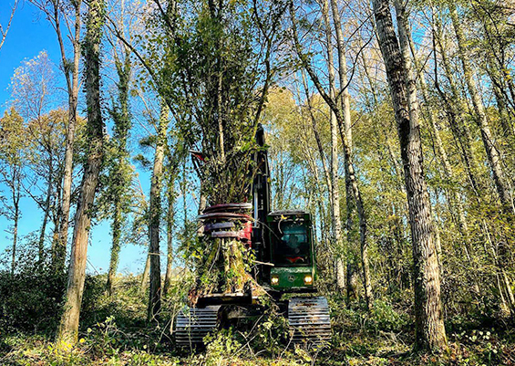 L’abattage est effectué par nos feller-buncher pour une coupe propre à ras le sol. Cet outil nous permet de faire des coupes en relevé de couvert avec peu de place et une conservation des plus beaux sujets sans dégât. Il est le plus performant dans les mauvais taillis avec sa capacité à accumuler les brins.