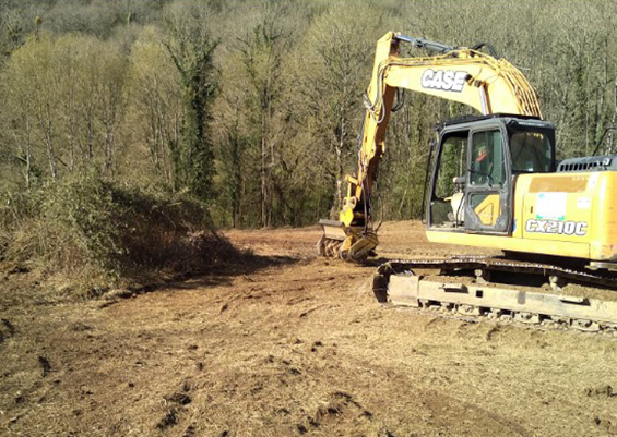 Une pelle équipée d’un broyeur de surface est disponible aussi pour le nettoyage des bassins d’orage ou d’irrigation, des étangs ou des landes difficiles d’accès.