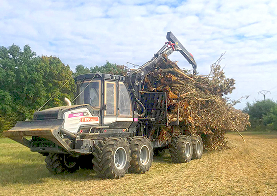 Nous possédons également un porteur 830 Timberpro, idéal pour le débardage des grandes longueurs en bois énergie ainsi que le transport des grumes de sciage et déroulage. Le Tigercat 625 C nous sert à débarder les zones plus difficiles d’accès comme les pentes ou les zones plus humides grâce à sa forte motricité et ses tracks. Très avantageux aussi dans le débardage des grumes.